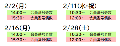 - 開催日: 2/10(月)、2/24(月)