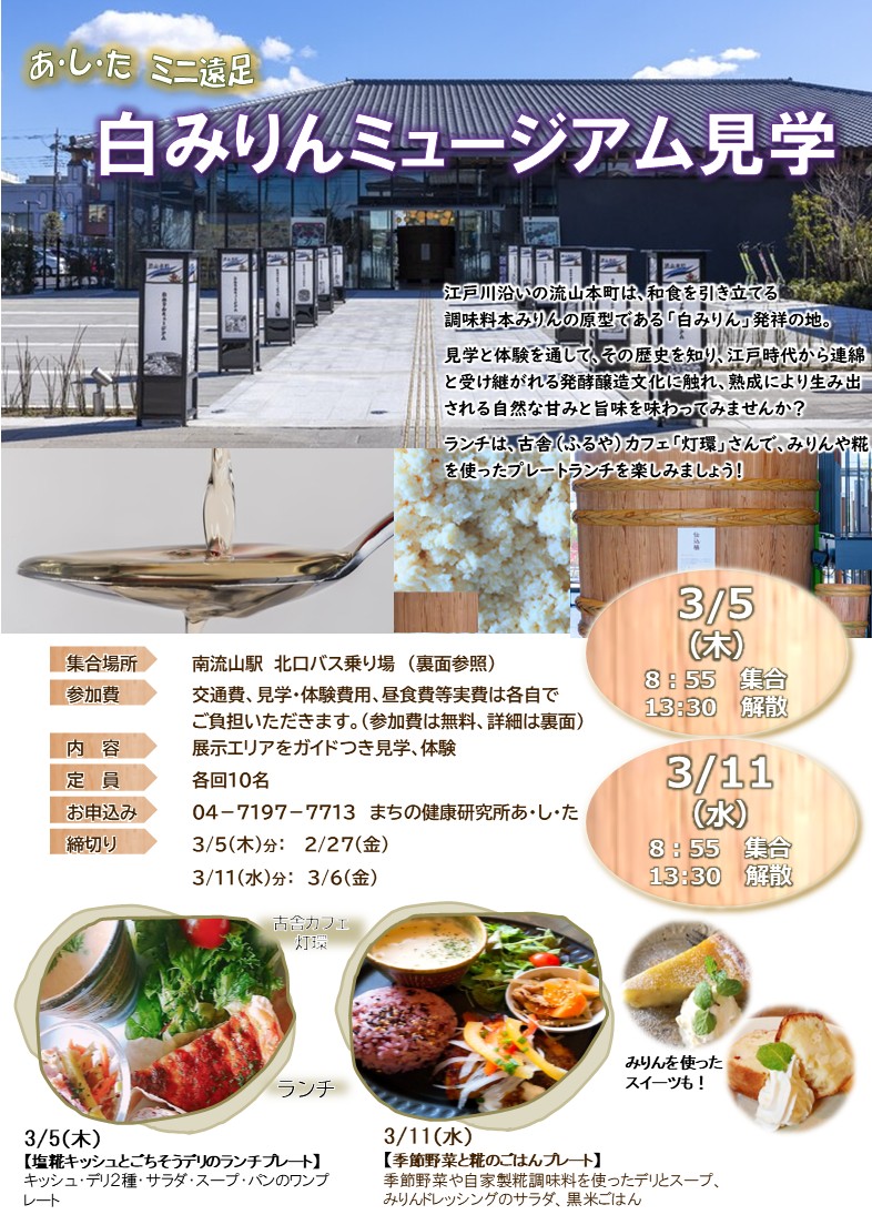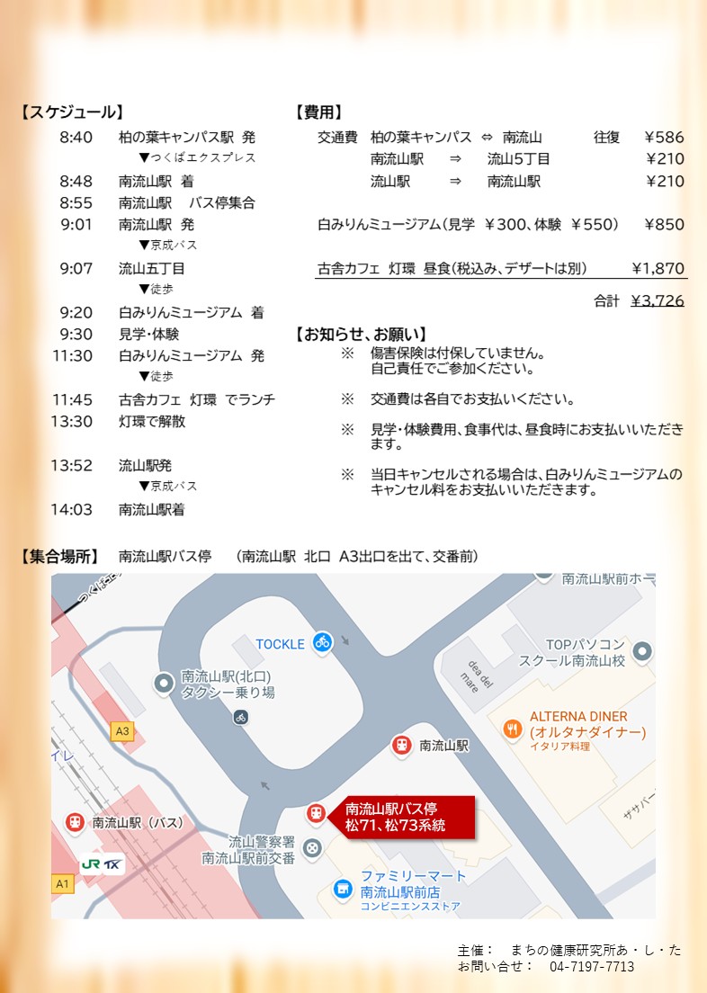 - 問合せ:まちの健康研究所あ・し・た 04-7197-7713